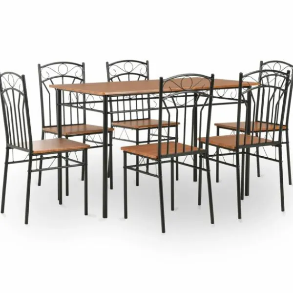 Som med de bästa designer består denna matgrupp av 1 bord och 6 högkvalitativa stolar med romantiska detaljer, det är ett perfekt val för matrummet eller köket. Denna köksgrupp är tillverkad i stark MDF med massiva stålben och är mycket stabil och hållbar. Dessutom har dess dekorativa detaljer en enkel elegans. Denna matgrupp kan enkelt torkas rent med en fuktig trasa. Köksgruppen är enkel att montera. Vid leverans ingår 1 bord och 6 matstolar utan armstöd.