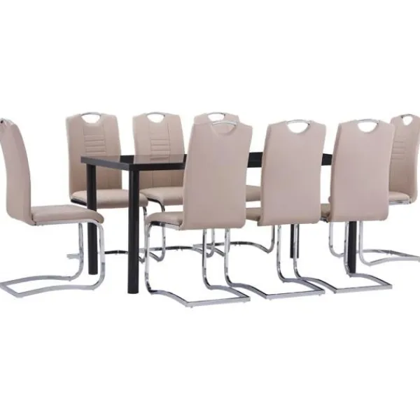 Vår matgrupp har en elegant och modern design och passar perfekt i moderna hem, matrum eller kommersiella restauranger. Dess stilrena och moderna design kommer att komplettera din inredning. Bordet har en slät bordsskiva i härdat glas som är enkel att rengöra med en fuktig trasa. Den pulverlackerade metallramen bidrar till dess massiva konstruktion och gör den mycket stabil och hållbar. Stolarna är klädda i mjukt konstläder och är tjockt stoppade för maximal komfort. Dess ergonomiska design gör matstolen mycket bekväm att sitta på. Tack vare den kromade stålramen är stolarna robusta och stabila. Dessutom har stolarna ett handtag i ryggstödet så att de enkelt kan flyttas. Matgruppen är enkel att montera. Vår matgrupp är perfekt när du bjuder in familj och vänner på middagsbjudningar.