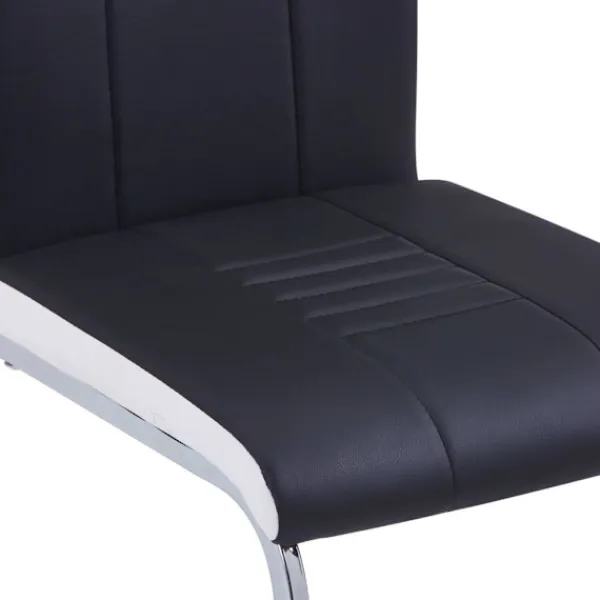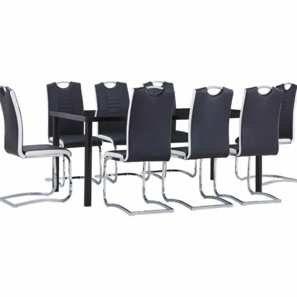 Vår matgrupp har en elegant och modern design och passar perfekt i moderna hem, matrum eller kommersiella restauranger. Dess stilrena och moderna design kommer att komplettera din inredning. Bordet har en slät bordsskiva i härdat glas som är enkel att rengöra med en fuktig trasa. Den pulverlackerade metallramen bidrar till dess massiva konstruktion och gör den mycket stabil och hållbar. Stolarna är klädda i mjukt konstläder och är tjockt stoppade för maximal komfort. Dess ergonomiska design gör matstolen mycket bekväm att sitta på. Tack vare den kromade stålramen är stolarna robusta och stabila. Dessutom har stolarna ett handtag i ryggstödet så att de enkelt kan flyttas. Matgruppen är enkel att montera. Vår matgrupp är perfekt när du bjuder in familj och vänner på middagsbjudningar.