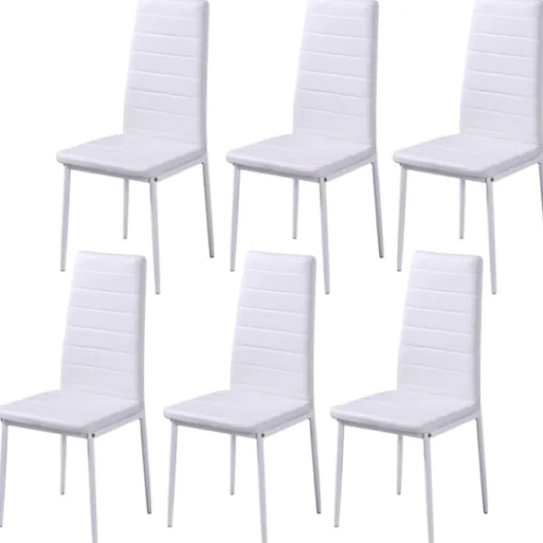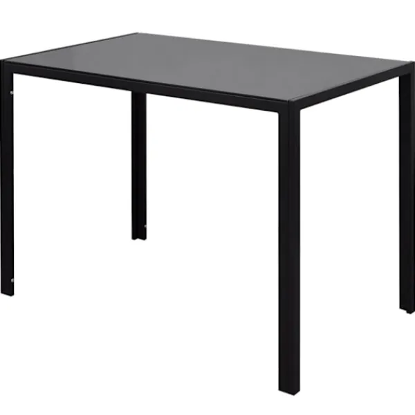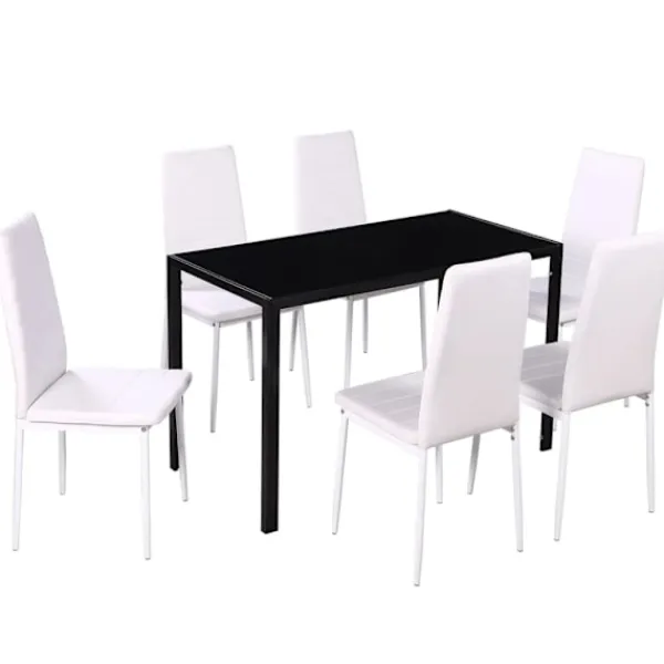Detta svarta matbordsset med 7 delar har en elegant och modern design, det är perfekt för dom som både vill ha komfort och elegans i sin matsal eller sitt kök. Bordsskivan är tillverkad av starkt, härdat glas som är enkelt att rengöra. Varje stol är beklädd med konstläder. Den spänstiga, vadderade sitsen är väldigt bekväm. I leveransen får du 1 bord och 6 stolar.