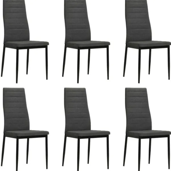 Denna uppsättning om 6 matstolar med en slimmad, modern design kommer att passa alla inredningar. Matstolarna har en stabil ram i stål och är klädda i ett högkvalitativt polyestertyg som är mjukt och hållbart. Tack vare dess tjockt stoppade sits och ryggstöd, såväl som ergonomiska design är dessa matstolar högst bekväma. Stolarna är enkla att montera. I leveransen ingår 6 matstolar.