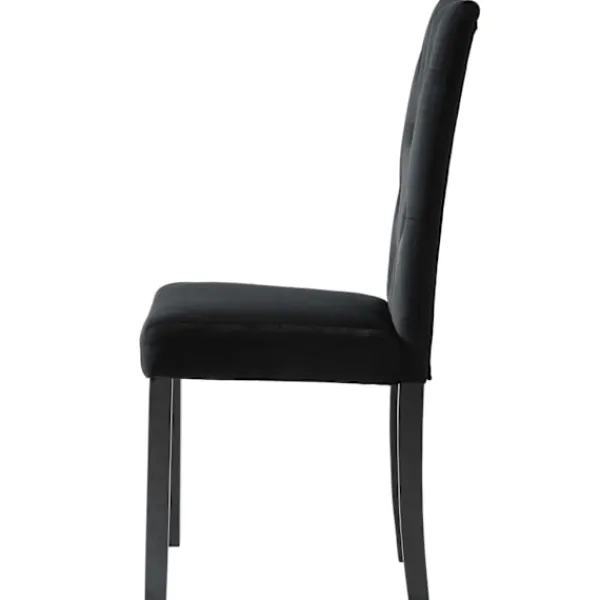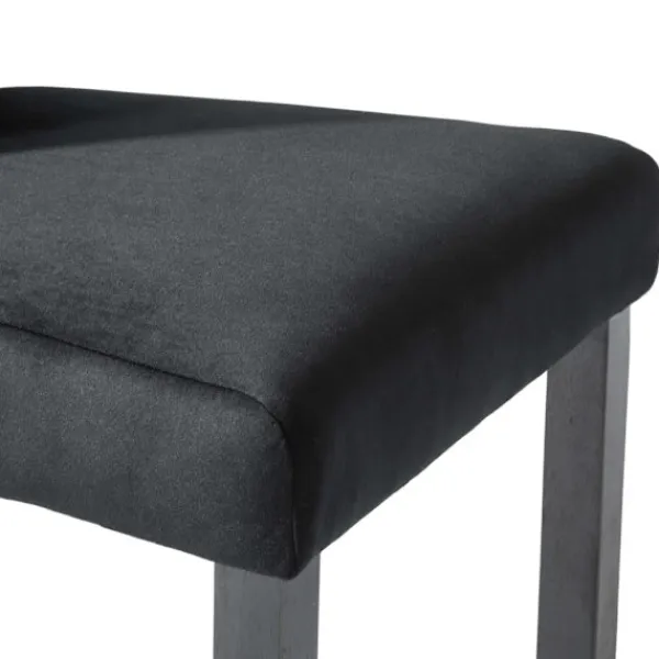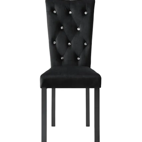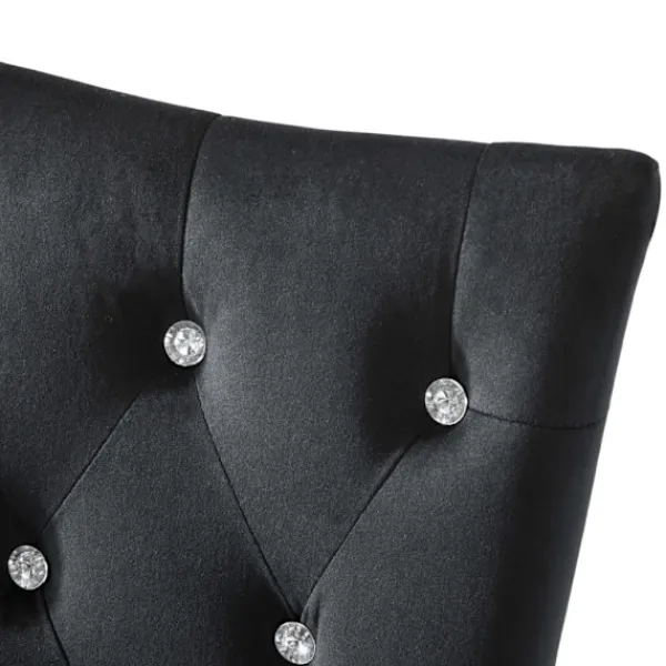 Ge din inredning en elegant känsla med vår uppsättning matstolar i sammet. Stolarna har tuftats med kristalliknande knappar, som ger dem ett glamoröst utseende. Stolarna har en robust, massiv träram och är klädda i högkvalitativt sammetstyg som är mjukt och hållbart. Tack vare deras tjockt vadderade sitsar och ryggstöd är dessa matstolar ytterst bekväma. Monteringen är enkel. I leveransen ingår 6 matstolar.