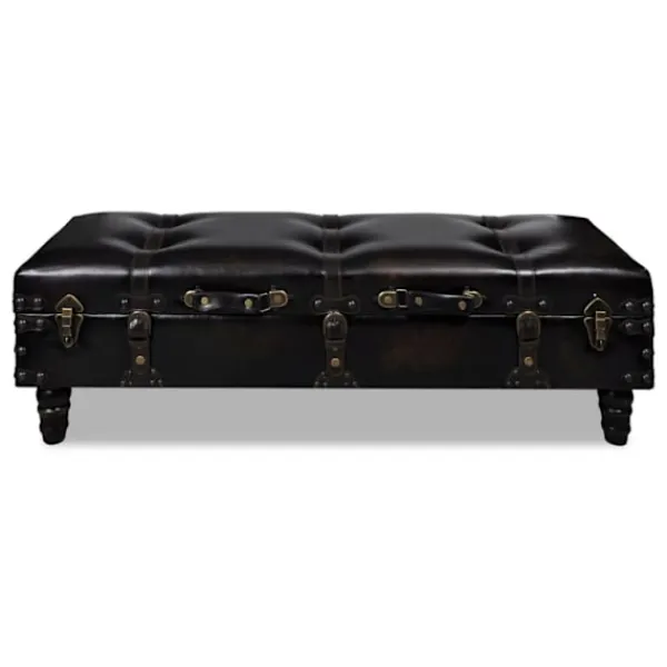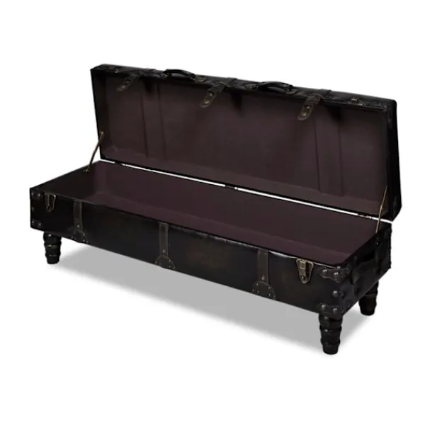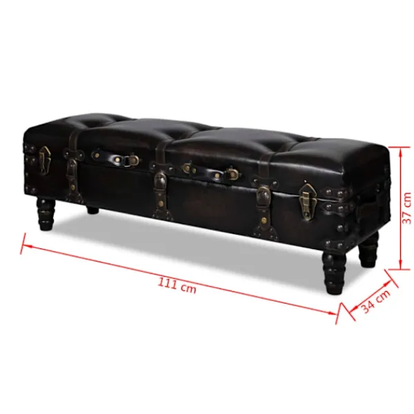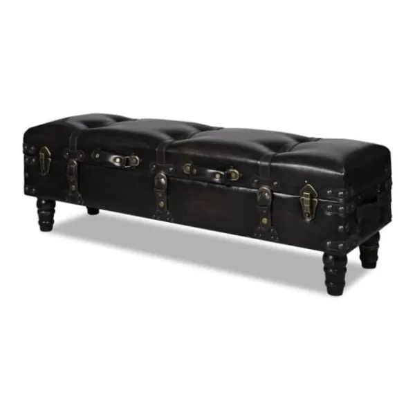 Denna förvaringsbänk har en elegant antik stil och är gjord av hållbar MDF och brunt konstläder som är enkelt att rengöra. Ett utmärkt val för att göra din inredning komplett, samtidigt som du får extra lagringsutrymme utan att det stör stilen i hemmet. Med andra ord är denna förvaringsbänk både funktionell och elegant. De extra handtagen, spännena och nyckelhålen ger denna förvaringsbänk extra komfort och säkerhet.