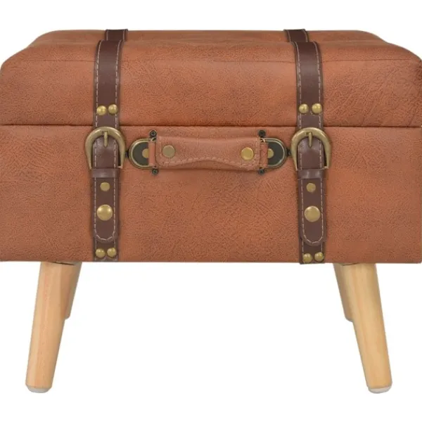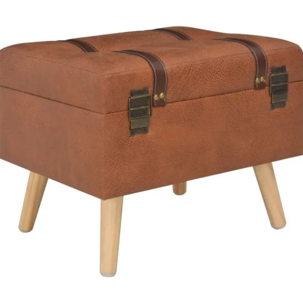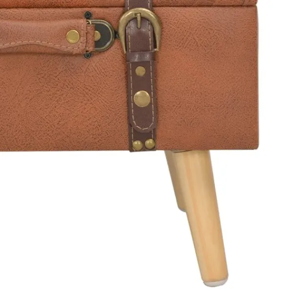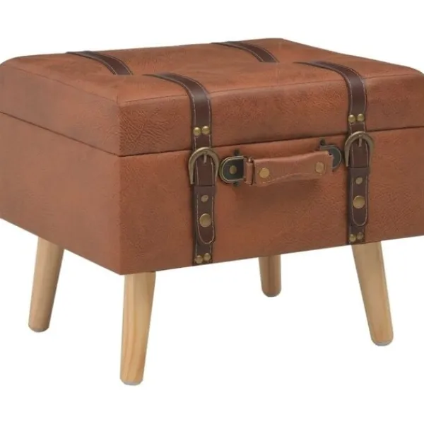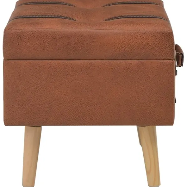 Vår mångsidiga och praktiska pall har en mysig design som passar alla inredningar. Pallen är klädd i konstläder och vadderad med skum för extra komfort. Dess massiva träben gör inte bara fotpallen stadig och hållbar men ger den också en elegant charm. Dessutom har den ett förvaringsfack under sitsen för extra förvaringsplats. Pallen är enkel att montera.