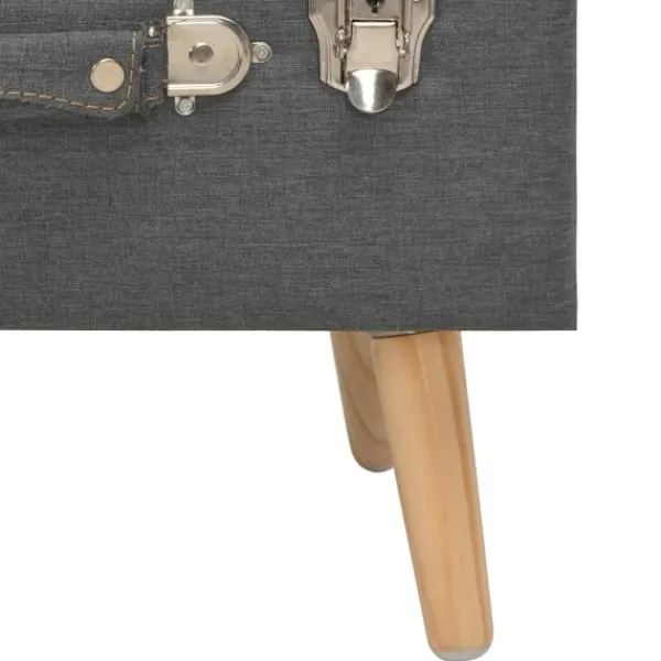 Vår mångsidiga och praktiska pall har en mysig design som passar alla inredningar. Pallen är klädd i tyg och vadderad med skum för extra komfort. Dess massiva träben gör inte bara fotpallen stadig och hållbar utan ger den också en elegant charm. Dessutom har den ett förvaringsfack under sitsen för extra förvaringsplats. Pallen är enkel att montera.