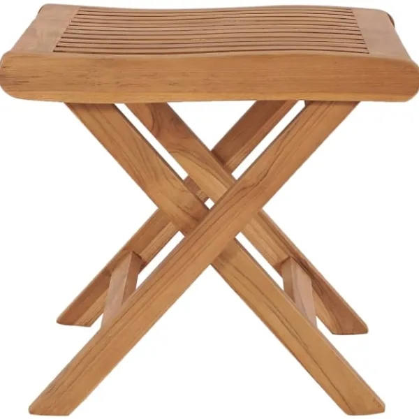 Denna hopfällbara fotpall i trä är praktisk och mångsidig. Du kan lägga upp fötterna för ökat stöd och använda den som en sittpall eller ett sidobord för dina tidningar, böcker, snacks med mera. Denna teakmöbel har tillverkats av extremt tålig teak och har åldrats, ugnstorkats och sedan finslipats så att den är väldigt slät. Teakträ är känt för sin exceptionella styrka och väderbeständighet, vilket gör det lämpligare för trädgårdsmöbler än något annat träslag. Teakträ är det perfekta valet om du vill köpa en trädgårdsmöbel som håller i många år. När det inte används kan den enkelt fällas ihop för att spara plats. Vår fotpall är enkel att montera.