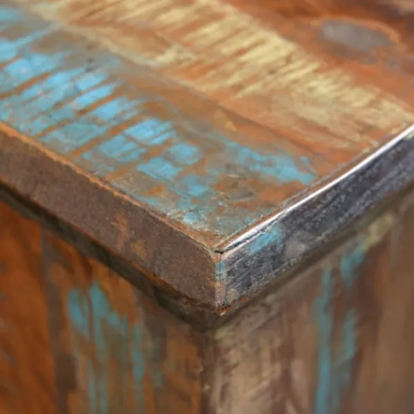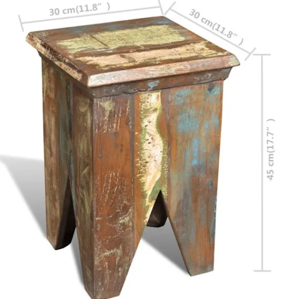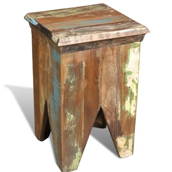 Den här pallen i återvunnet trä ger dig en bekväm sittplats. Den massiva konstruktionen i trä ger den en hög stabilitet medan de naturliga kornmönstren och de olika egenskaperna hos massivt trä gör varje pall unik. De kompakta fyra benen är väldigt stativ. Pallen är tillverkad i återvunnet trä vilket betyder att varje möbel är unik och skiljer sig något från de andra. Möbler tillverkade av återvunnet trä har karaktärsdrag från olika träslag såsom sheesham, teak, palisander, mangoträ, acacia, ädelträ, etc. Återvunnet trä är massivt, stadigt, hållbart och vackert. Spikhål och synlig ådring ger möbeln en historia och bjuder in ännu en generation att genomsyra den med sin alldeles egen sådan. Den här möbeln kommer att visa att du förstår koncept såsom resursskydd, miljöskydd och hållbar utveckling. Dessutom tillför det rena hantverket en spektakulär, exotisk vintagestil till pallen. Varje process för återkombinering, polering, målning och vaxning är omsorgsfullt utförd. Den här återvunna pallen är ett perfekt val för ditt hem och många klassiska kaféer! Viktig anmärkning: Eftersom varje del är handgjord med en unik blandning av återvunnet trä, är varje pall något annorlunda i färg. Leveransen är slumpartad.