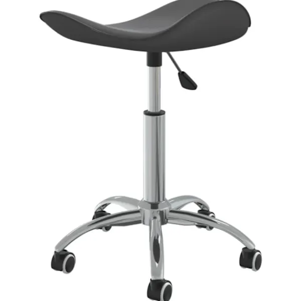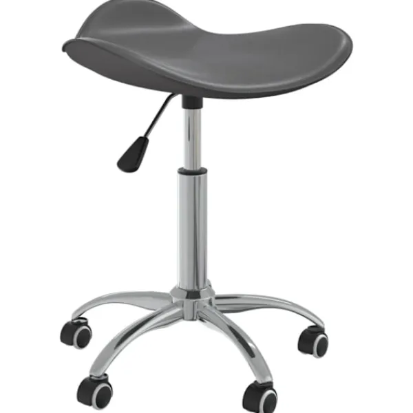 Denna snurrstol är klädd i mjukt konstläder, som gör den skön att sitta på. Den kromade stålramen bidrar till hög stadighet. Tack vare gasfjädermekanismen är sitsen även justerbar i höjdled. Dessutom kan sitsen vridas 360 grader, vilket ger hög flexibilitet. Rullhjulen gör att du kan röra dig fritt.