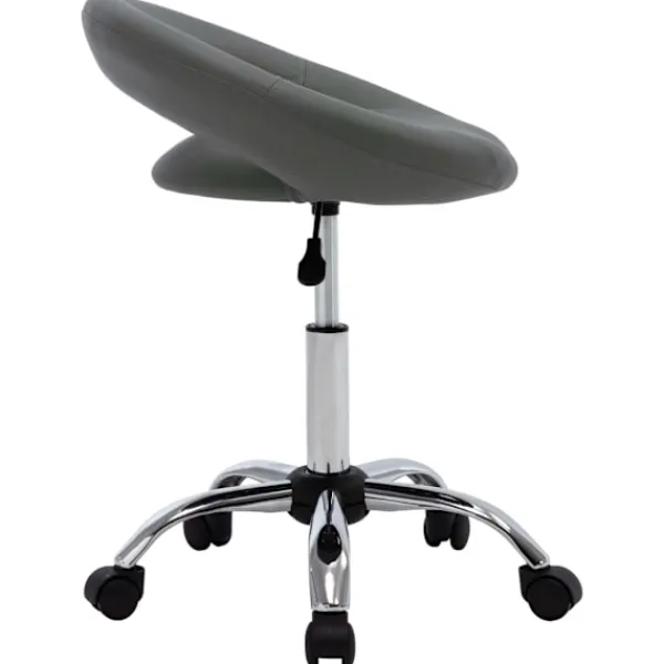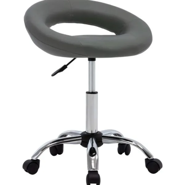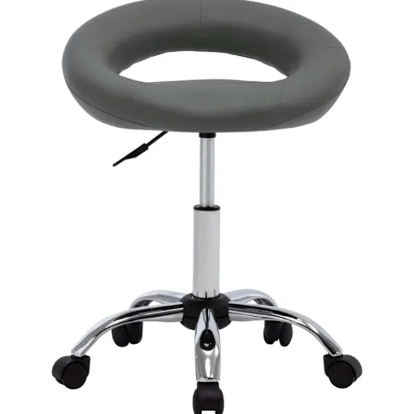 Denna rullbara arbetsstol med modern design är en iögonfallande möbel som ger din produktiva arbetsdag extra komfort. Det vadderade ryggstödet med en böjd design stöder ryggen när du sitter och lutar dig lite på den. Sitsen har en hög komfort, då den varken är för hård eller för mjuk. Den starka förkromade stålramen gör stolen väldigt robust och hållbar. Tack vare den praktiska gaslyftmekanismen kan du justera sitthöjden enligt dina bekvämligheter. Dessutom svänger hjulen i 360 grader, så att du kan flytta den fritt i olika riktningar enligt behov, vilket gör den ideal för tatuerare, skönhetssalonger, kliniker och så vidare.