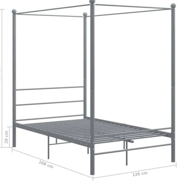 Sängen är smart designad med en övre ram för att hänga dina favoritgardiner eller myggnät, vilket ger ditt sovrum en unik charm, samtidigt som det skapar extra integritet. Den är tillverkad i pulverlackerad metall och är extremt robust och hållbar. Dess robusta ribbotten erbjuder det stöd och den komfort som behövs. Med alla dessa kombinerade egenskaper kan du njuta av en bra sovupplevelse varje natt i den här sängen! Obs: Leveransen omfattar endast sängramen. Madrasser ingår inte. Du kan hitta madrasser som passar i vår butik.
