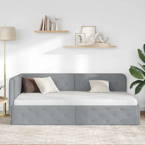 Den här tyg hörnsängramen har en smart design som blandar stil och funktion på ett enkelt sätt, perfekt för alla moderna sovrum. Dess L-formade design sparar plats och ger en bekväm lösning för både sittande och sovande. Med rena linjer och en minimalistisk stil passar denna dagbäddram perfekt i nutida inredningar, vilket gör den idealisk för både stilmedvetna och de som vill ha praktiska lösningar för mindre utrymmen.