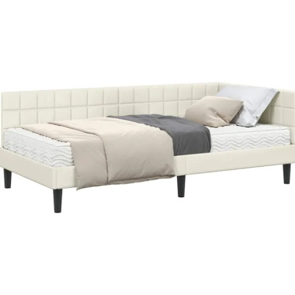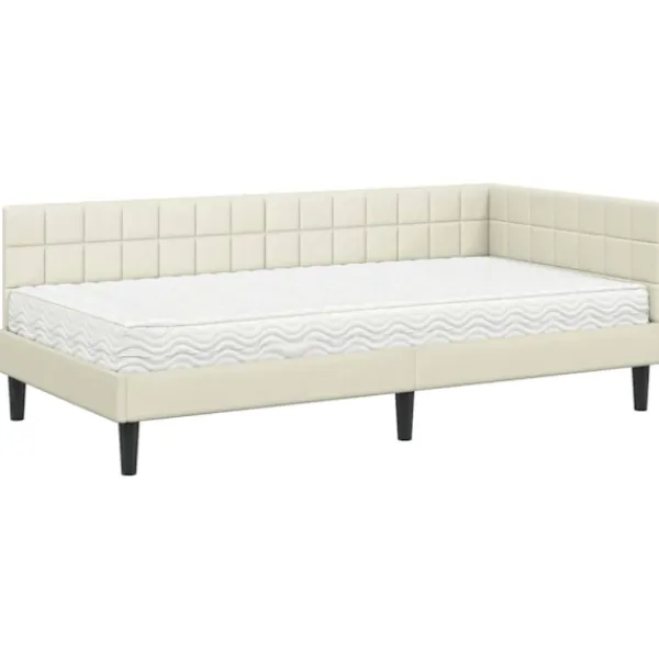Den här hörnsängen med madrass kombinerar stil och funktionalitet på ett smidigt sätt och passar perfekt i ett modernt sovrum. Med sin rektangulära form och lyxiga sammetfinish ger den ett elegant och sofistikerat intryck till ditt sovrum.