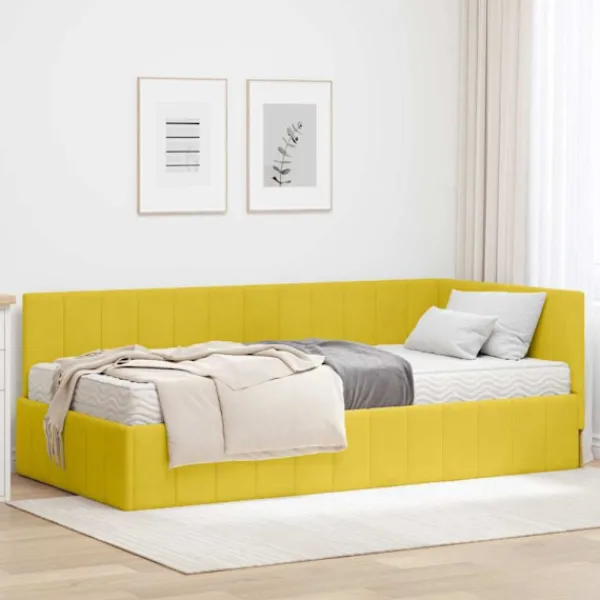 Denna Velvet hörnsängram med madrass mixar modern design med praktiska hörnlösningar. Tillverkad av en skön blandning av sammet och trä, ger den en elegant touch till vilket sovrum som helst. Den mjuka sammetytan skapar en lyxig känsla för en lugn och bekväm sömnmiljö. Materialen är noga utvalda och passar olika stilar, samtidigt som de ger utmärkt nytta och stil.
