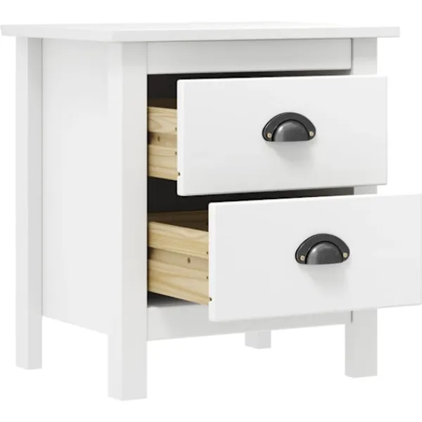 Det moderna nattduksbordet i trä är designat för att bli en tidlös detalj i din inredning. Sängbordet har 2 lådor som är enkla att öppna, vilket ger dig gott om plats att hålla småsaker organiserade och inom räckhåll. Sängbordet är enkelt att montera. Nattduksbordet är också enkelt att rengöra med en torr trasa.
