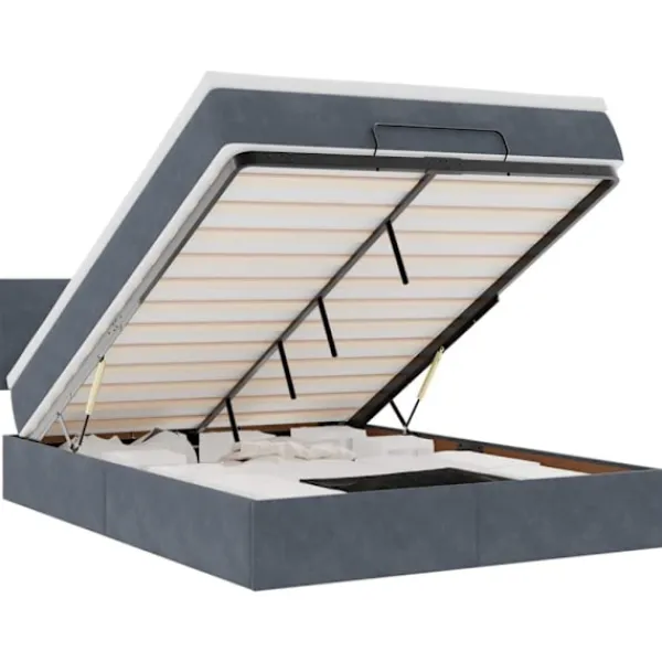 - Gott om förvaringsutrymme under sängen: Tack vare den hydrauliska lyftmekanismen erbjuder sängramen gott om förvaring under sängen, vilket maximerar utrymmet utan att ta upp extra golvyta. Med bara ett enkelt drag i handtaget lyfts lamellbotten smidigt, så att du kan hämta dina föremål snabbt och enkelt.