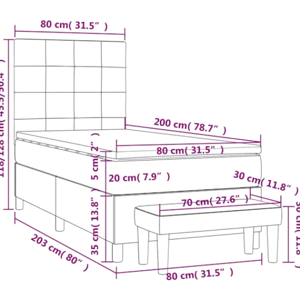 Använd denna säng med pocketresårmadrass för att njuta av en god sömn! Den ger dig maximal avkoppling och en trevlig sömn. Hållbart material: Tyget är hållbart, andas och har ett enkelt och rent utseende.Praktisk huvudgavel: Sänggaveln är justerbar i höjd enligt dina önskemål. Huvudgaveln ger dig utmärkt ryggstöd medan du sitter upp i sängen för att läsa eller titta på TV.Pocketresårmadrass: Den inbyggda individuella pocketresåren är känd för sin mycket höga kvalitet samtidigt som den säkerställer en hög hållbarhet och anpassningsförmåga. Den absorberar buller och stötar som orsakas av en orolig sömn.Medelhårt stöd: Sängmadrassen har extra stabilitet och precis rätt fasthet utan att offra komforten. Så den är ideal för personer som sover på rygg eller mage.Hudvänligt tyg: Bädmadrassen har ett slitstarkt såväl som hudvänligt tygöverdrag, vilket gör det mjukt och bekvämt.Multifunktionell bänk: Denna bänk kan fungera som en extra plats i ditt hem. Den kan också ställas framför din säng. Observera:Av hygieniska skäl kan madrassen inte returneras om förpackningen har tagits bort eller öppnats.Varje produkt levereras med en monteringsmanual i lådan för enkel montering.