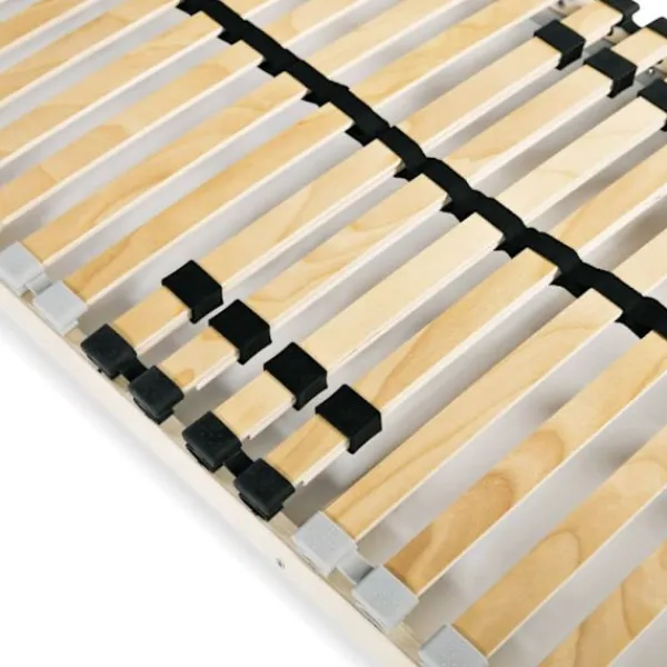 Med en massiv ram i bok blir ribbotten massiv robust och hållbar. Dess 7 komfortzoner ger dig ett optimalt stöd för din kropp. Båda ändarna av ribborna hålls på plats av SBS-gummitätningar för bättre stabilitet av hela konstruktionen. Tack vare de 4 justerbara dubbla ribborna i mittzonen kan basens fasthet anpassas efter dina behov. Monteringen är enkel.