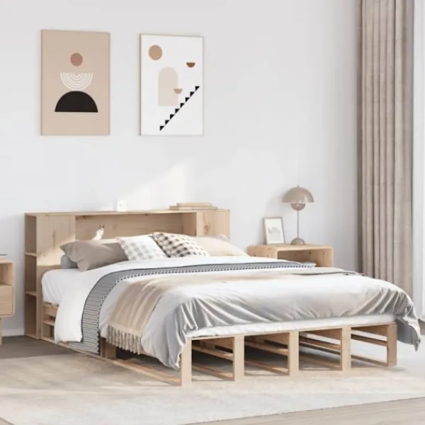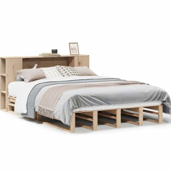 Få en bättre sömn med denna sängstomme i trä med bokhylla! Det är ett välkomnande tillskott i alla sovrum.
