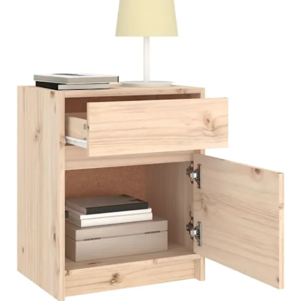 Dessa sängskåp i trä kommer att uppfylla dina olika krav och blir ett perfekt tillskott i ditt rum. Sängbordet är tillverkat i massiv furu, och är robust och stabilt. Det står även emot tidens tand, vilket ger det en lång livstid. Hantverket och de vackra träådringarna gör varje möbel unik och något olik de andra. Detta sängbord har gott om förvaringsplats för att hålla viktiga saker i ordning och inom räckhåll. Uppgradera din inredning med dessa eleganta sängskåp!