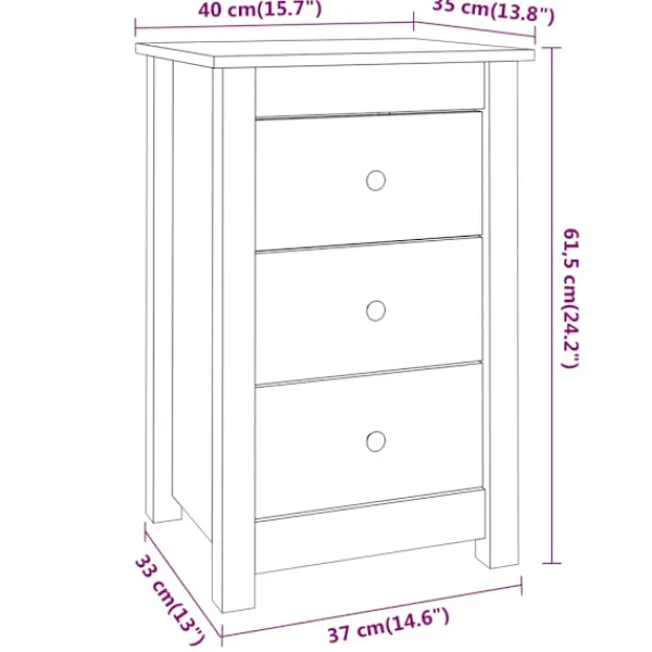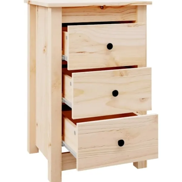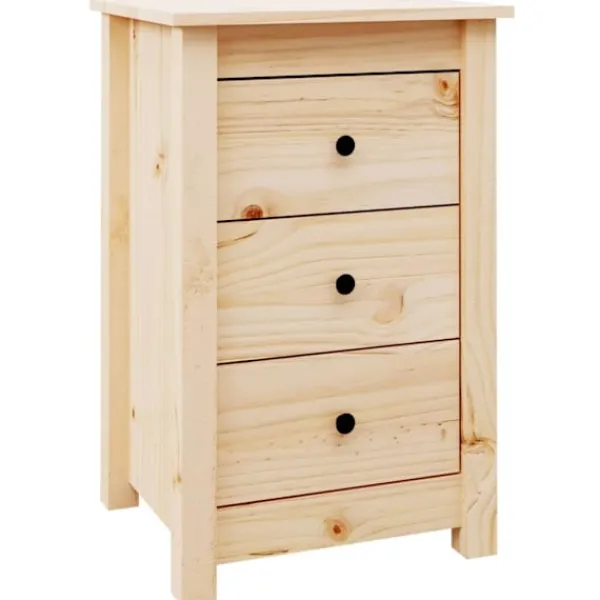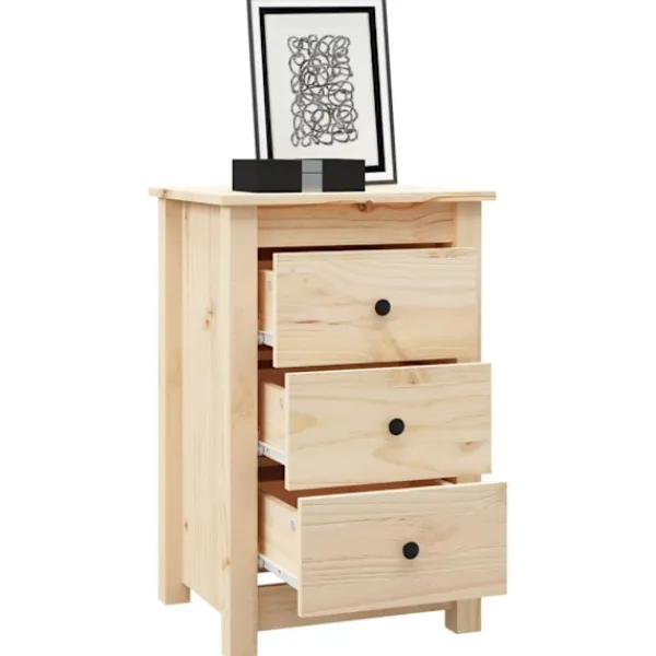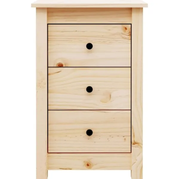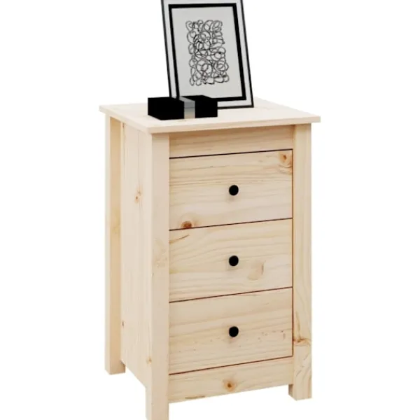 Dessa nattduksbord i trä med elegant design blir ett tidlöst tillskott i din inredning. Massivt furuträ: Massivt furuträ är ett vackert naturmaterial. Furuträ har raka fibrer, och knutarna ger materialet sin signatur, rustikt utseende.Gott om förvaringsutrymme: Sängbordet har 3 lådor med praktiskt förvaringsutrymme för att hålla tidskrifter, fjärrkontroller och andra småsaker organiserade och inom räckhåll.Robust ovansida: Sängbordet har robust ovansida som kan användas för att ställa bordslampa, böcker etc. Varning:För att förhindra att den välter måste denna produkt användas med den medföljande monteringsanordningen för vägg