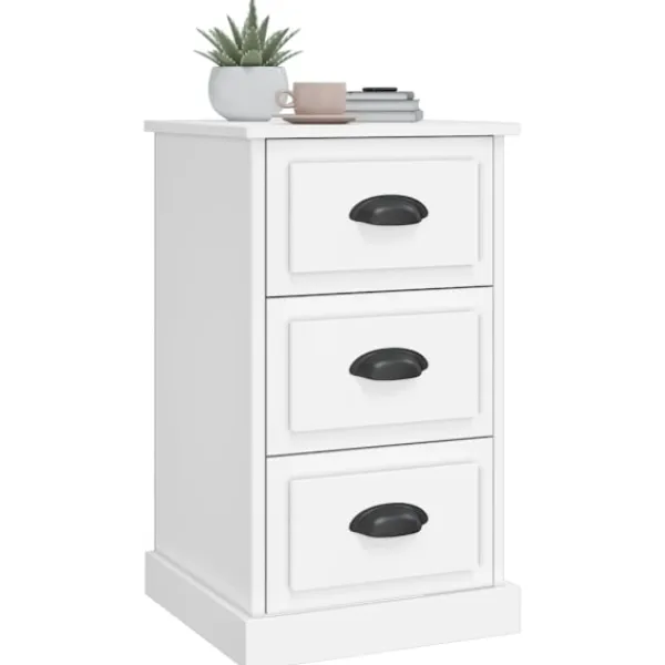 Detta trendiga sängbord är ett perfekt tillskott till ditt hem, vilket skapar ett bestående intryck! Hållbart material: Det konstruerade träet är av exceptionell kvalitet med slät yta och är också starkt, stabilt och fuktbeständigt.Gott om förvaringsutrymme: Med en slät ovansida och 3 lådor hjälper sängbordet till att organisera dina böcker, TV-tillbehör, glasögon och kaffekoppar så du har dina prylar inom räckhåll.Multifunktionell design: Denna byrå är perfekt att användas som sängbord, som sidobord bredvid soffan i vardagsrummet eller som en extra yrå i ditt arbetsrum. Varning:För att förhindra att den välter måste denna produkt användas tillsammans med det medföljande väggfästet.