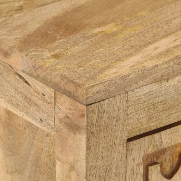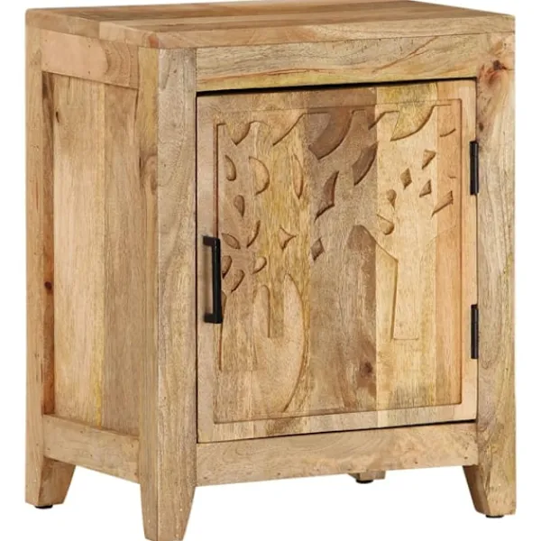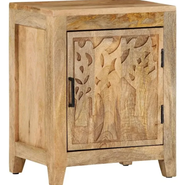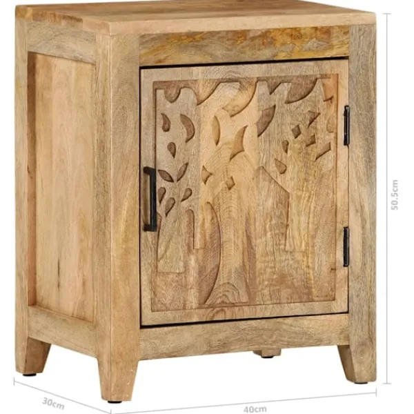 Detta nattduksbord i trä blir ett fint tillskott i din inredning. Det kan även användas som sängbord eller sidobord. Sängbordet är tillverkat i massivt mangoträ, ett tropiskt lövträ som är starkt nog att bära vikten. Det står även emot tidens tand, vilket gör det stabilt och hållbart. Sängbordet har en stadig ovansida där du kan ställa en sänglampa, väckarklocka eller annat du behöver. Sängbordet har ett stort utrymme bakom dörren med gott om plats för att hålla småsaker organiserade och inom räckhåll. OBS: Färger och ådringar varierar från möbel till möbel, vilket gör varje produkt unik. Leveransen är slumpartad.