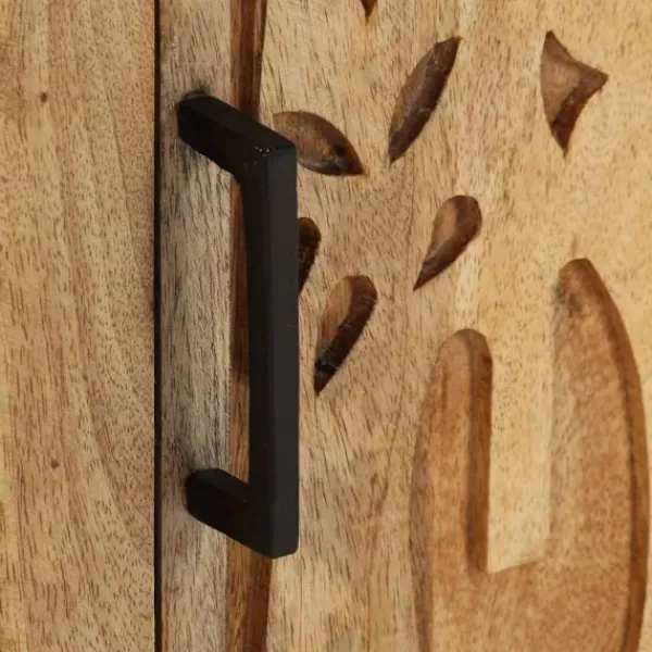 - Material: Massivt mangoträ med naturlig yta, järn med grå yta