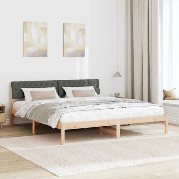 Denna plattformssängram förenar modern design med funktionalitet, vilket gör den till en perfekt mittpunkt i moderna sovrum. Den är tillverkad av massivt tallträ och ger ett elegant och fräscht utseende som passar flera inredningsstilar. Den väggmonterade sänggaveln i polyester sparar utrymme och ger en stilren finish, så att du kan njuta av en mysig och avkopplande plats i ditt sovrum.