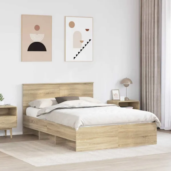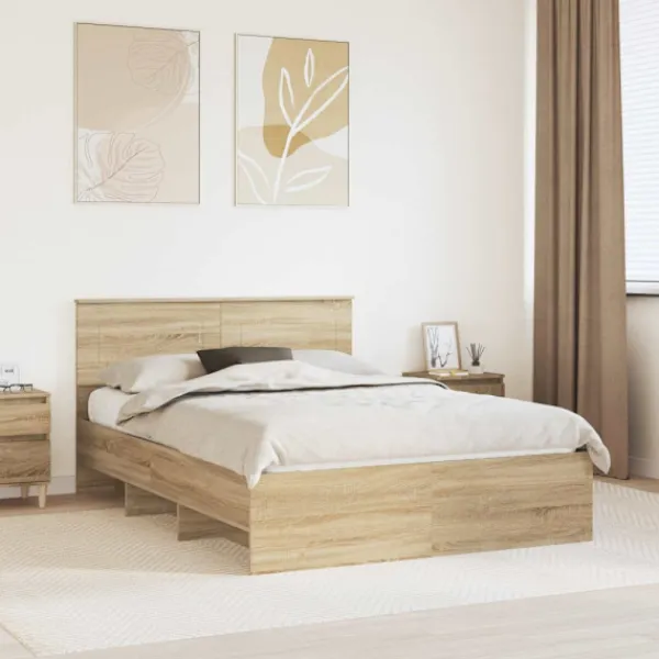 - Ingår komponenter: Sängen har en inbyggd huvudgavel som ger extra komfort och stöd. Den är gjord av samma konstruerade trä och fulländar utseendet samtidigt som den gör sängen mer funktionell genom att erbjuda en bekväm plats att luta sig mot när du läser eller kopplar av.