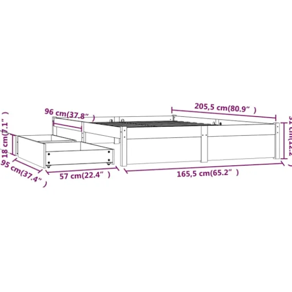 Den här sängramen i trä har en enkel men tidlös design och är den perfekta inredningen som är både praktisk och dekorativ i ditt sovrum. Massivt furuträ: Massivt furuträ är ett vackert naturmaterial. Furuträ har raka fibrer, och knutarna ger materialet sin signatur, rustikt utseende.Robust sängbotten: Plywoodribborna bidrar till god viktfördelning, vilket säkerställer att madrassen håller sig på plats när du vänder dig i sömnen.Förvaringsfunktion: De medföljande sänglådorna ger gott om förvaringsutrymme för att lagra dina väsentligheter och hålla ditt rum rent och städat. Observera:Vid leverans ingår endast sängstommen. Madrass ingår ej Du kan titta i vår shop för matchande madrasser.Denna sängram är lämplig för en madrass som mäter 160×200 cm.