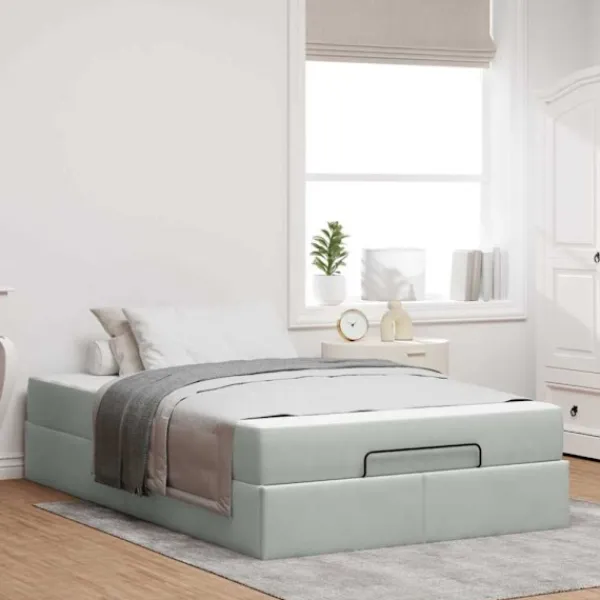 Den här moderna sängramen med madrass ger en stilren och enkel look, perfekt för sovrum som vill ha en fin balans mellan stil och funktion. Rena linjer utan för mycket krusiduller gör att sängen passar med olika inredningar, vilket är perfekt för dig som gillar minimalism. Den lyxiga sammetsytan ger både stil och en härlig känsla, så att ditt sovrum blir en mysig oas av komfort och lugn.