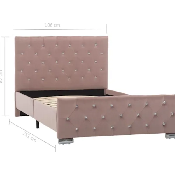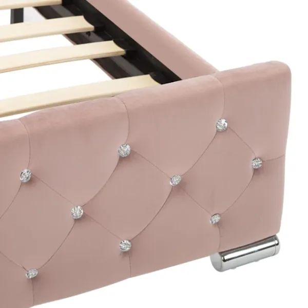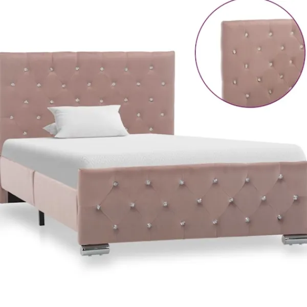 Denna klassiska sängram kommer att bli fokuspunkten i sovrummet. Den utmärks av sin diskreta men ändå eleganta design, och utstrålar en känsla av elegant charm i ditt sovrum. Denna sängram är tillverkad av trä och stål som är extremt robust och hållbart. Metallfötterna bidrar till extra hållbarhet. Sängen är dessutom klädd i slitstarkt sammet, som utstrålar en inbjudande känsla och är lätt att rengöra. Denna sängram är lämplig för en madrass som mäter 100 x 200 cm. Observera att leveransen endast omfattar en sängram; en madrass ingår inte. Sängen är enkel att montera. Du kan hitta en matchande madrass i vår butik.