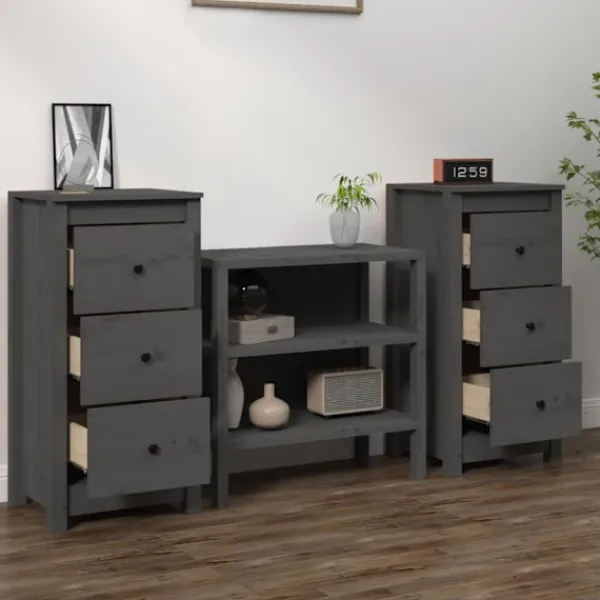Njut av ett organiserat vardagsrum med dessa skänkar i trä! Den praktiska skänken kommer att uppfylla dina olika behov och är perfekt att ha i alla sorters rum. Massivt furuträ: Massivt furuträ är ett vackert naturmaterial. Furuträ har raka fibrer, och knutarna ger materialet sin rustika utstrålning.Gott om förvaring: Skänken har gott om förvaringsutrymme för att hålla dina olika saker välorganiserade och inom räckhåll.Robust ovansida: Dess robusta ovansida är perfekt för att ställa dekorativa föremål, fotoramar eller krukväxter på Varning:För att förhindra att den välter måste denna produkt användas med den medföljande monteringsanordningen för väggObservera:Varje produkt levereras med en monteringsmanual i lådan för enkel montering.