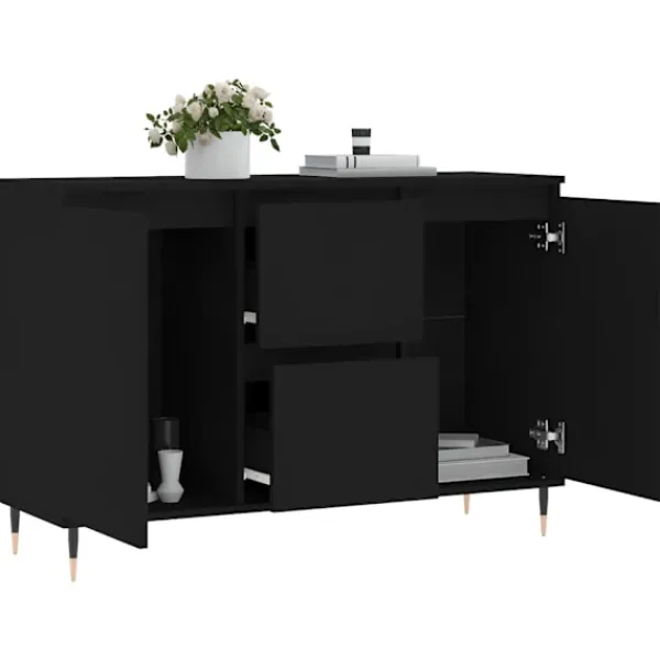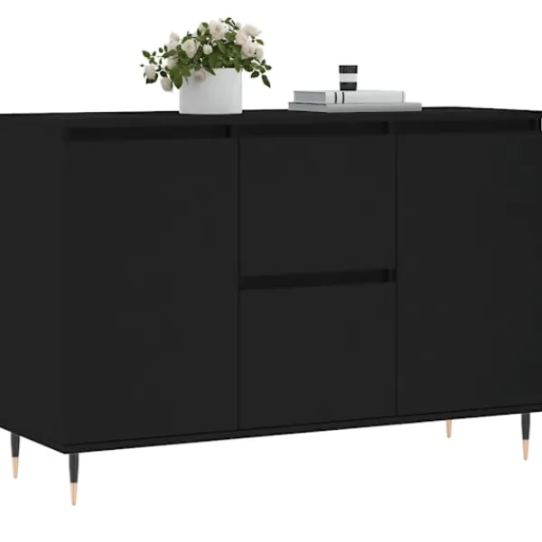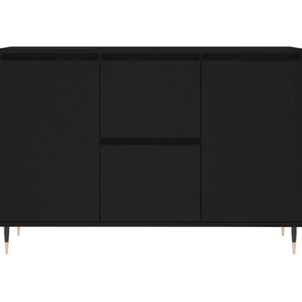 Denna trendiga skänk med ett tidlöst utseende kan bli ett perfekt tillägg till din heminredning. Hållbart material: Det konstruerade träet är av exceptionell kvalitet med slät yta och är också starkt, stabilt och fuktbeständigt. Skänken är tillverkad av konstruerat trä och är lätt att rengöra med en fuktig trasa.Gott om förvaring: Skänken har gott om förvaringsutrymme för att hålla dina olika saker välorganiserade och inom räckhåll.Visningsfunktion: Ovansidan är perfekt för att visa dina favoritdekorationer, tavelramar och krukväxter.Järnben: Tv-bänkens järnben säkerställer robusthet och stabilitet. Varning:För att förhindra att den välter måste denna produkt användas tillsammans med det medföljande väggfästet.