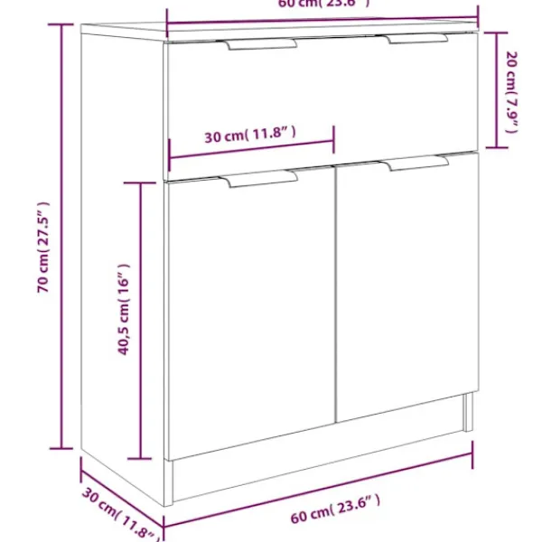 Denna skänk med minimalistisk charm kommer att uppfylla dina olika behov och är perfekt att ha i alla sorters rum. Lättskött material: Skänken är tillverkad av konstruerat trä som är lätt att rengöra. Det konstruerade träet är av exceptionell kvalitet med slät yta och är också starkt, stabilt och fuktbeständigt.Rymligt förvaringsutrymme: Förvaringsutrymmet gör det enkelt att hålla saker organiserade.Multifunktionell: Den stabila ovansidan är perfekt för att visa upp dekorativa föremål, fotoramar eller krukväxter. Den kan också användas som konsolskåp, sidoskåp etc. VARNING:För att förhindra att den välter måste denna produkt användas med den medföljande monteringsanordningen för vägg Observera:Varje produkt levereras med en monteringsmanual i lådan för enkel montering.