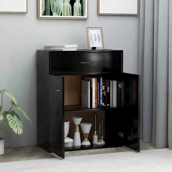 Denna skänk med minimalistisk charm kommer att uppfylla dina olika behov och är perfekt att ha i alla sorters rum. Robust material: Det konstruerade träet är av exceptionell kvalitet med slät yta och är också starkt, stabilt och fuktbeständigt.Gott om förvaring: Förvaringsskåpet har 2 dörrar och en låda med gott om förvaringsutrymme för att hålla dina saker välorganiserade och inom räckhåll.Visningsfunktion: Den robusta bordsskivan är perfekt för att visa upp dekorationer, inramade foton eller krukväxter.Praktiska dörrar: Håll dina väsentligheter fria från damm genom att förvara dem i denna skänk. Varning:För att förhindra att den välter måste denna produkt användas tillsammans med det medföljande väggfästet.