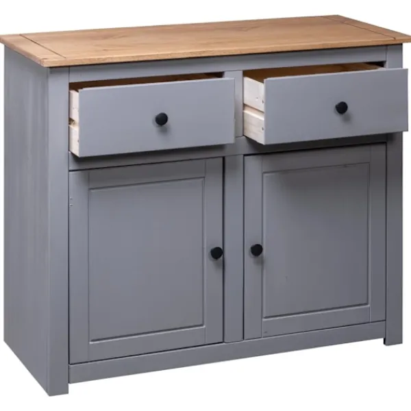 Denna träskänk i massivt trä har en rustik och trendig design och blir ett både dekorativt och praktiskt tillskott i din inredning. Tack vare skänkens 2 lådor och 2 luckor kan du förvara dina tidskrifter, böcker, DVD:er och mediaenheter organiserat och inom räckhåll. Dess robusta ovansida är en perfekt plats att ställa dekorativa föremål som vaser eller krukväxter. Skåpet är tillverkat i massiv furu. Varje steg i processen utförs med största omsorg, vare sig det är polering, målning eller lackering. Det skickliga hantverket och de vackra träådringarna gör varje möbel unik och något olik alla andra. Viktigt: Färger och fibrer kan variera från produkt till produkt, vilket gör varje skåp unikt. Leveransen är slumpartad, vilket säkerställer varje produkts exklusivitet och individualitet.