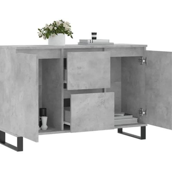 Denna trendiga skänk med ett tidlöst utseende kan bli ett perfekt tillägg till din heminredning. Hållbart material: Det konstruerade träet är av exceptionell kvalitet med slät yta och är också starkt, stabilt och fuktbeständigt. Skänken är tillverkad av konstruerat trä och är lätt att rengöra med en fuktig trasa.Gott om förvaring: Skänken har gott om förvaringsutrymme för att hålla dina olika saker välorganiserade och inom räckhåll.Visningsfunktion: Ovansidan är perfekt för att visa dina favoritdekorationer, tavelramar och krukväxter.Järnben: Tv-bänkens järnben säkerställer robusthet och stabilitet. Varning:För att förhindra att den välter måste denna produkt användas tillsammans med det medföljande väggfästet.