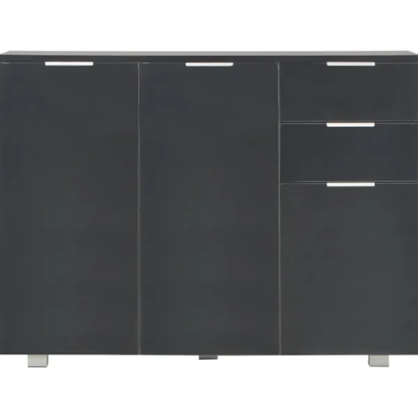 Håll ordning och reda i vardagsrummet med vår eleganta skänk! Denna praktiska skänk tillfredsställer dina behov och blir ett optimalt komplement i ditt rum. Byrån är tillverkad av konstruerat trä med en högglansig vit yta och utstrålar ett raffinerat utseende och är mycket stabilt och hållbart. Dessutom är den utrustad med 2 lådor och 3 dörrar, med gott om förvaringsutrymme för dina olika föremål, vilket gör ditt rum städat och rent. Detta högglansiga förvaringsskåp är lätt att rengöra. Uppgradera ditt hem till nästa nivå med vår enkla och eleganta skänk!