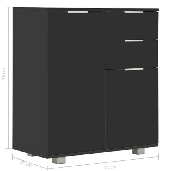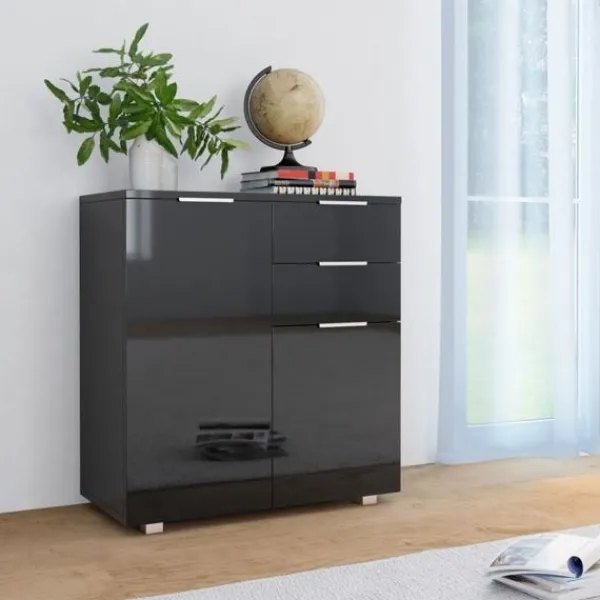 Med sitt praktiska förvaringsutrymme blir skänken ett perfekt komplement i alla rum. Eftersom den är tillverkad i spånskiva med en högglansig finish är byrån vacker och oerhört stadig och stabil. Dessutom är den utrustad med 2 lådor och har gott om plats för dina olika prylar, så att du kan hålla ditt rum städat. Detta förvaringsskåp i högglans är enkelt att rengöra.