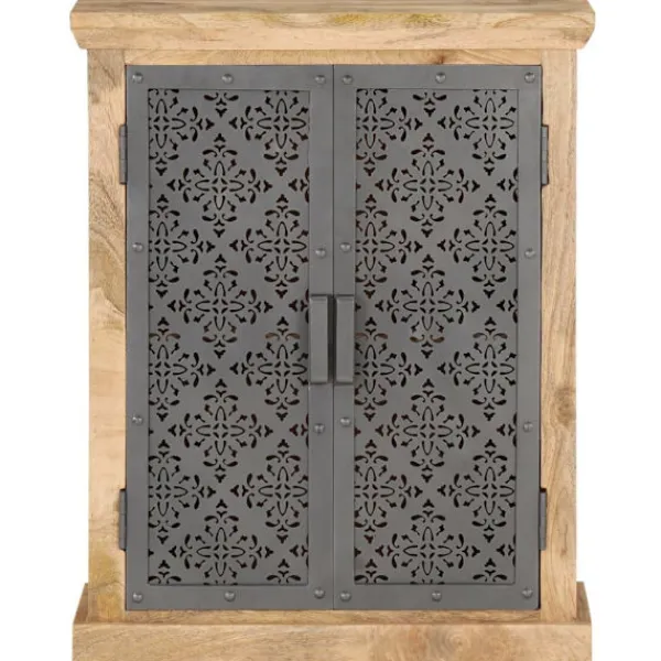 Vår eleganta skänk blir ett riktigt blickfång i ditt hem och presenterar samtidigt en ultimat lösning för att hålla dina saker organiserade och ur sikte. Skänken som är tillverkad i massivt mangoträ, har fått en vacker finish genom polering, målning och lackering, som gör att det utstrålar ett robust utseende. Dessutom bidrar ståldörrarna till skåpets skönhet. Det har gott om plats för böcker, tidskrifter eller andra föremål. Den är också enkel att rengöra och underhålla med en fuktig trasa.