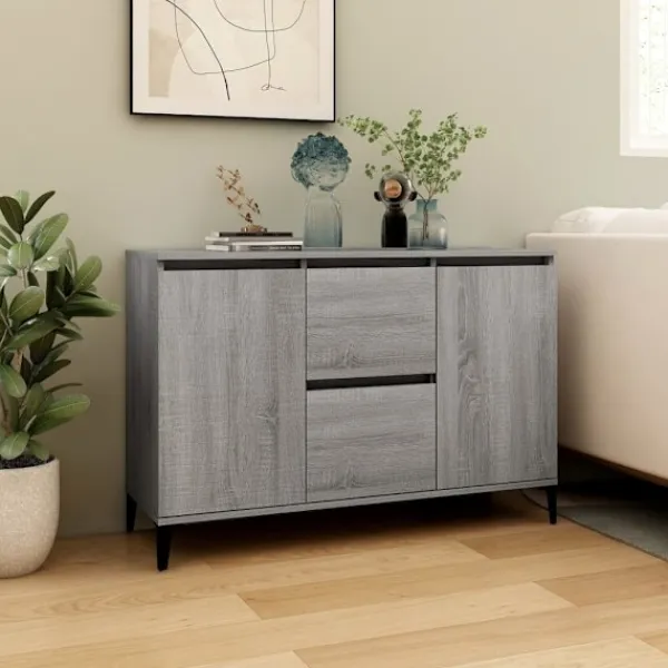 Denna skänk med minimalistisk charm kommer att uppfylla dina olika behov och är perfekt att ha i alla sorters rum. Rymligt förvaringsutrymme: Förvaringsutrymmet gör det enkelt att hålla saker organiserade.Multifunktionell: Den stabila ovansidan är perfekt för att visa upp dekorativa föremål, fotoramar eller krukväxter. Den kan också användas som konsolskåp, sidoskåp etc.Lättskött material: Byrån är tillverkad av konstruerat trä som är lätt att rengöra. Det konstruerade träet är av exceptionell kvalitet med slät yta och har också styrka, stabilitet samt motståndskraft mot fukt. VARNING:För att förhindra att den välter måste denna produkt användas med den medföljande monteringsanordningen för vägg