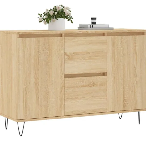 - Hållbart material: Det konstruerade träet är av exceptionell kvalitet med slät yta och är också starkt, stabilt och fuktbeständigt. Skänken är tillverkad av konstruerat trä och är lätt att rengöra med en fuktig trasa.