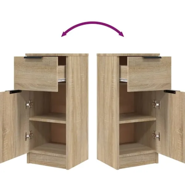 Dessa skänkar med minimalistisk charm uppfyller dina olika behov och är perfekta att ha i alla sorters rum. Praktiskt material: Det konstruerade träet är av exceptionell kvalitet med slät yta och har också styrka, stabilitet samt fuktbeständighet.Rymlig förvaring: Skåpet har 2 fack och en låda med gott om förvaringsutrymme. Du kan hålla dina böcker, multimediaapparater och andra föremål inom räckhåll.Visningsfunktion: Den robusta ovansidan är ideal för att visa dekorativa föremål, fotoramar eller krukväxter på.Bred tillämpning: Det mångsidiga förvaringsskåpet kan uppfylla dina olika krav för det kan också användas som sängbord. Varning:För att förhindra att den välter måste denna produkt användas med den medföljande monteringsanordningen för vägg Observera:Varje produkt levereras med en monteringsmanual i lådan för enkel montering.