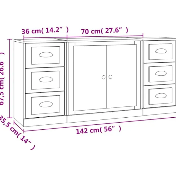Dessa klassiska skänkar med ett tidlöst utseende kan bli ett perfekt tillägg i din heminredning. Hållbart material: Det konstruerade träet är av exceptionell kvalitet med slät yta och är också starkt, stabilt och fuktbeständigt.Gott om förvaring: Skåpet har gott om förvaringsutrymme för att hålla dina olika saker välorganiserade och inom räckhåll.Robust ovansida: Du kan också placera dina favoritfoton, dekorationer eller blommor ovanpå skänken för att berika ditt rum. Varning:För att förhindra att den välter måste denna produkt användas tillsammans med det medföljande väggfästet.