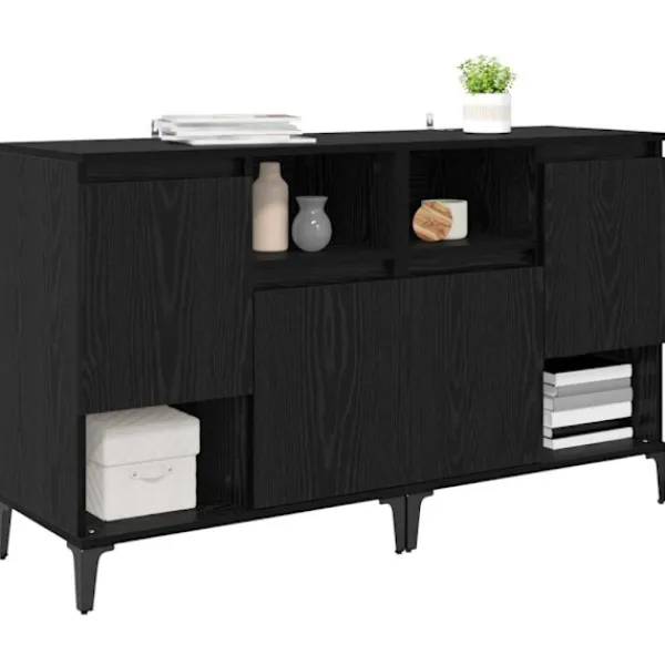 Den stiliga bänken av konstruerat trä erbjuder en modern förvaringslösning som passar perfekt i varje kök eller matsal. Dess rektangulära form och minimalistiska design ger den ett stilrent uttryck. Sideboarden passar lätt in i olika inredningar med sin släta yta och eleganta svarta finish. Den är perfekt för att organisera viktiga saker och blir en snygg detalj i ditt vardagsrum eller matsal.
