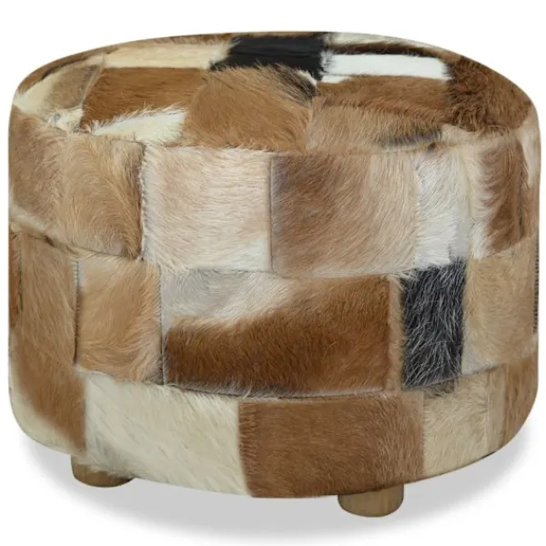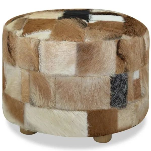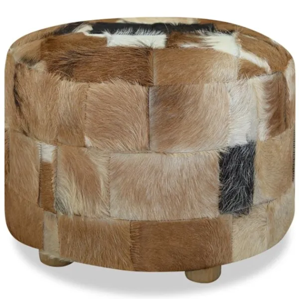 Puffen är mycket bekväm att sitta på och passar alla slags inredningsstilar. Den hållbara klädseln av äkta getläder är väldigt mjuk. Den starka träramen gör den robust och hållbar. Dess vackra getskinnsmönster ger den ett elegant utseende. Kort sagt, den här puffen är mjuk, bekväm och väldigt trendig. Den är redan monterad; ingen montering krävs.