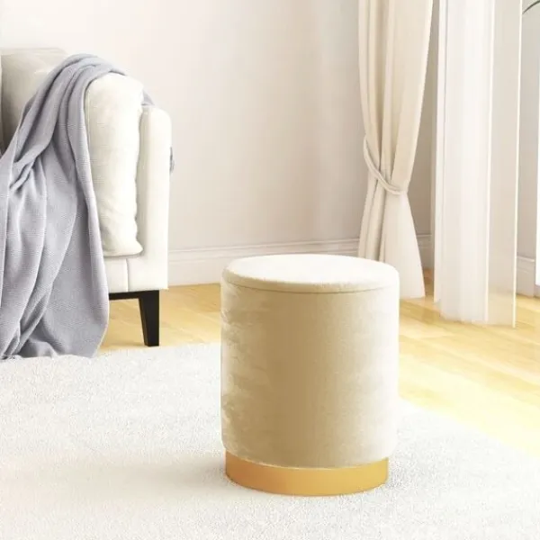 Denna eleganta runda förvaringspall ger dig högsta möjliga sittkomfort, med sin snygga men praktiska design. Denna runda pall är klädd i mjuk sammet, den har en klassisk utstrålning och är platsbesparande, vilket bidrar till optimal komfort. Den här moderna pallen har ett lock för praktisk förvaring, och du kan gömma tillbehör och förvara böcker eller tidskrifter. Den glamorösa järnbasen tillför stolens unika skönhet och ger hög stabilitet. Denna pall är ett perfekt komplement till din hall och vardagsrum.
