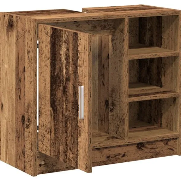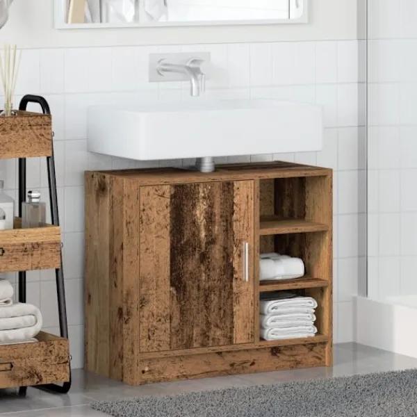 Detta trä-badrumsskåp erbjuder en stilren och praktisk förvaringslösning för moderna hem. Med minimalistisk design förhöjer det vilket badrum som helst. Det är byggt av konstruerat trä som är stabilt nog för dina förvaringsbehov, och dess oavslutade baksida och stiliga handtag ger en touch av elegans. Det är perfekt för badrum som vill ha både stil och funktionalitet, och erbjuder gott om plats för att hålla toalettartiklar och lakan snyggt organiserade.