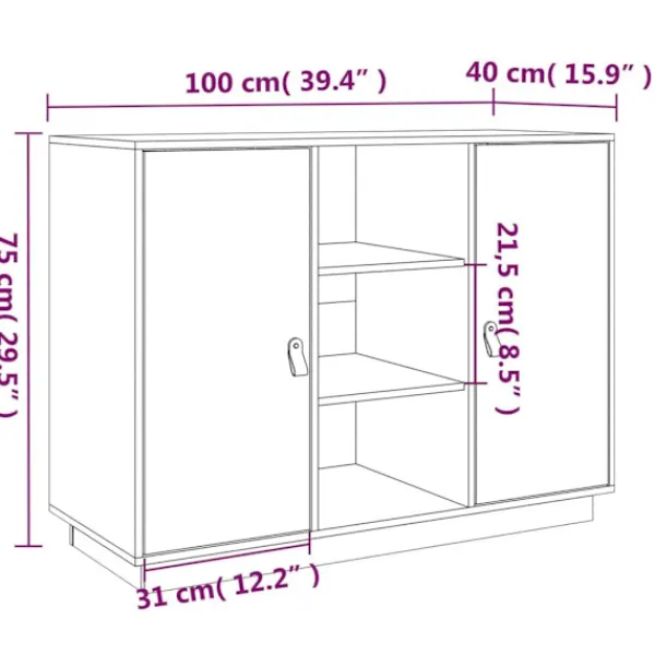 Denna skänk uppfyller dina olika krav och blir ett perfekt tillskott i ditt rum. Massivt furuträ: Detta skåp är tillverkat av massivt furuträ. Massivt furu är ett vackert naturmaterial. Furuträ har raka fibrer, och knutarna ger materialet sin signatur, rustikt utseende.Gott om förvaringsutrymme: Skåpet är utrustat med fack och dörrar och erbjuder gott om förvaringsutrymme för att hålla dina olika dagliga saker välorganiserade och inom räckhåll.Robust ovansida: Du kan också placera dina favoritfoton, dekorationer eller blommor ovanpå skåpet för att berika ditt rum.Praktisk design: Detta skänkskåp har dörrar som kan skydda dina saker från damm och smuts. Varning:För att förhindra att den välter måste denna produkt användas med den medföljande monteringsanordningen för vägg Observera:Varje produkt levereras med en monteringsmanual i lådan för enkel montering.